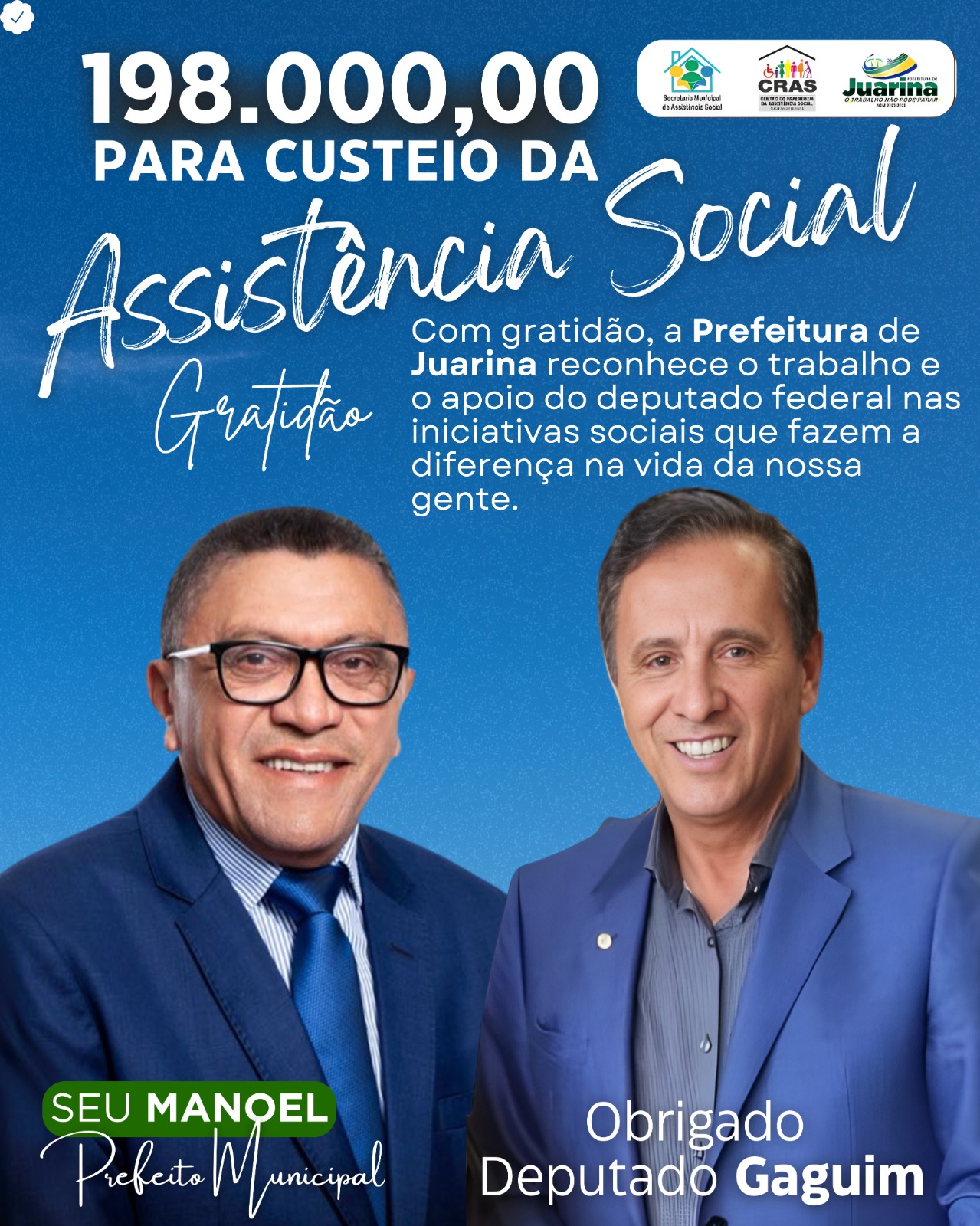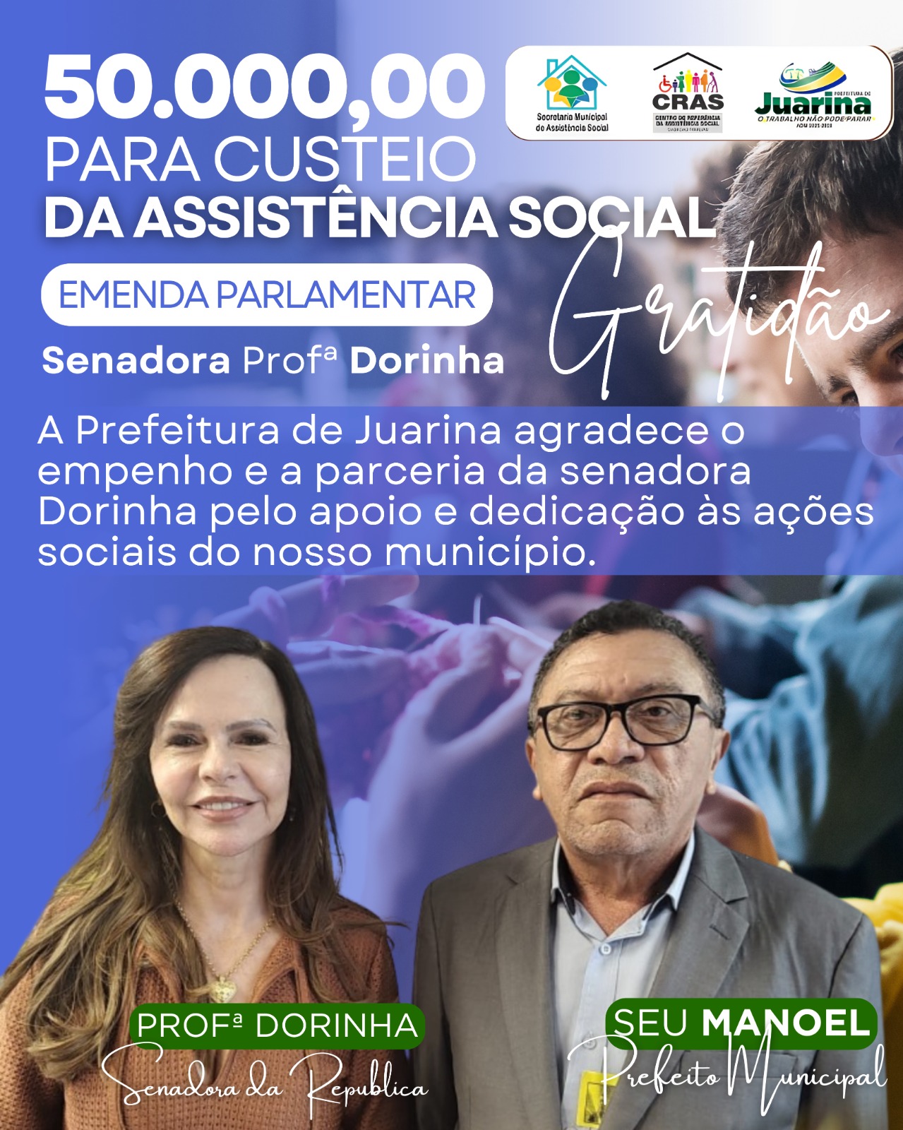 Com Emenda da Senadora Dorinha Seabra, Juarina recebe R$ 50.000,00 para custeio da assistência social. Esses recursos vão ajudar na manutenção dos programas, bem como ações realizadas pelo Centro de Referência da Assistência Social e ações que…