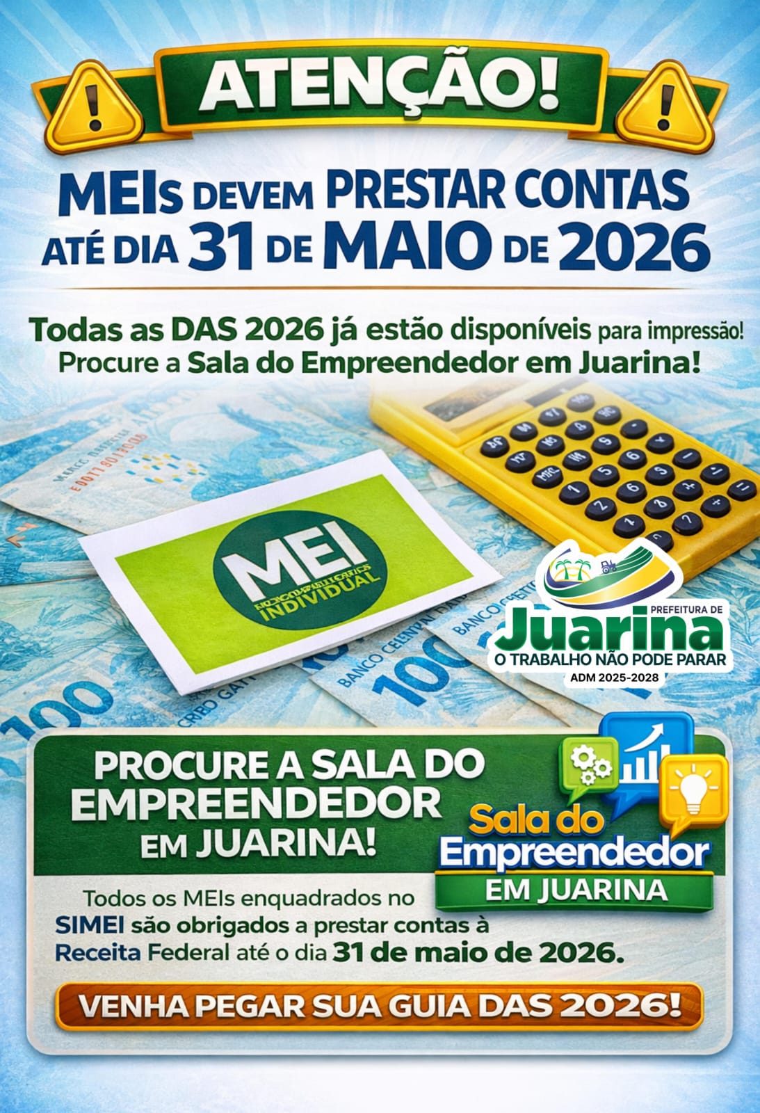 Prazo para prestação de contas de Micro Empreendedor Individual Dúvidas procurem a Sala do Empreendedor localizada na Rua Tiradentes Prédio da Secretaria da Mulher