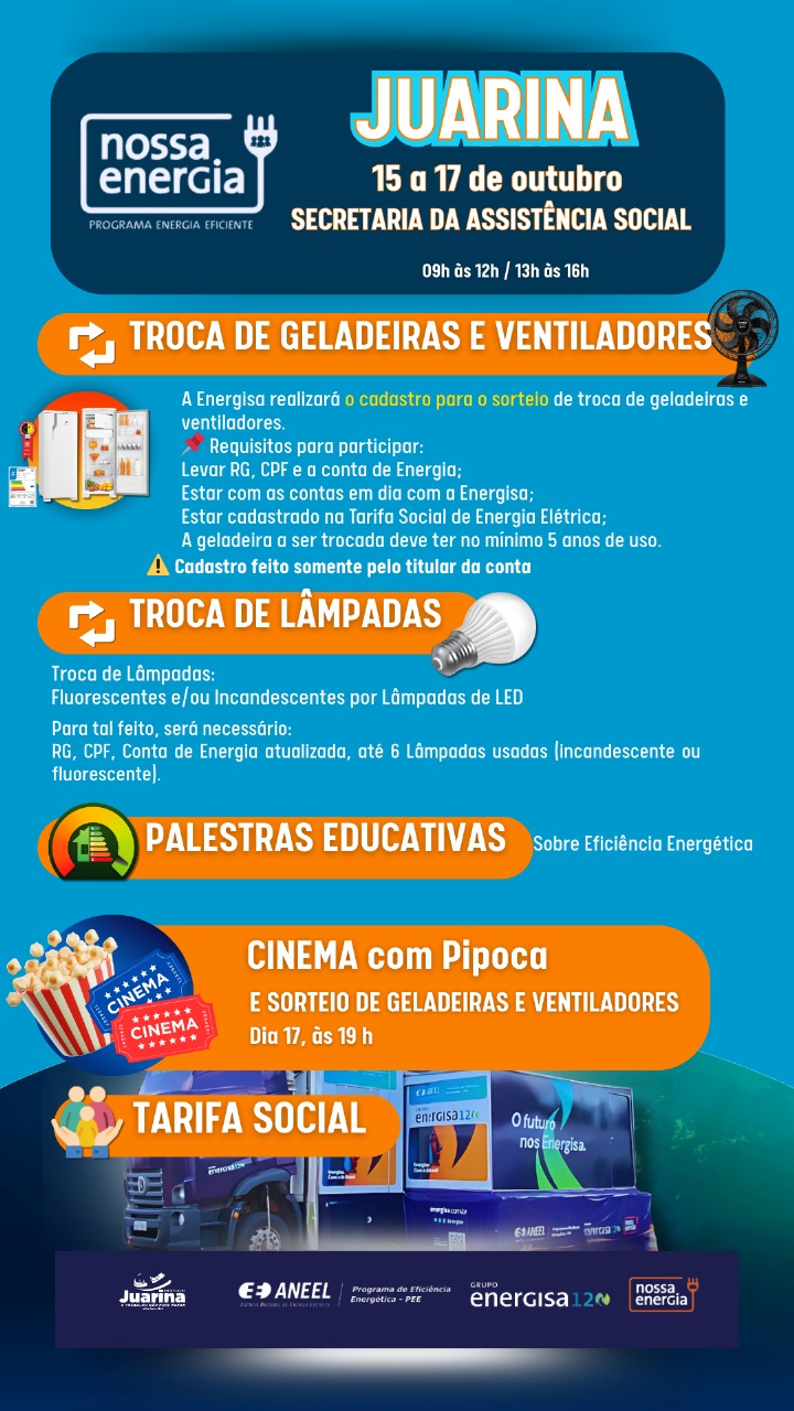 💙 Realização Energisa, em parceria com Aneel e Prefeitura de Juarina. Energisa, Ligada na sua Energia.