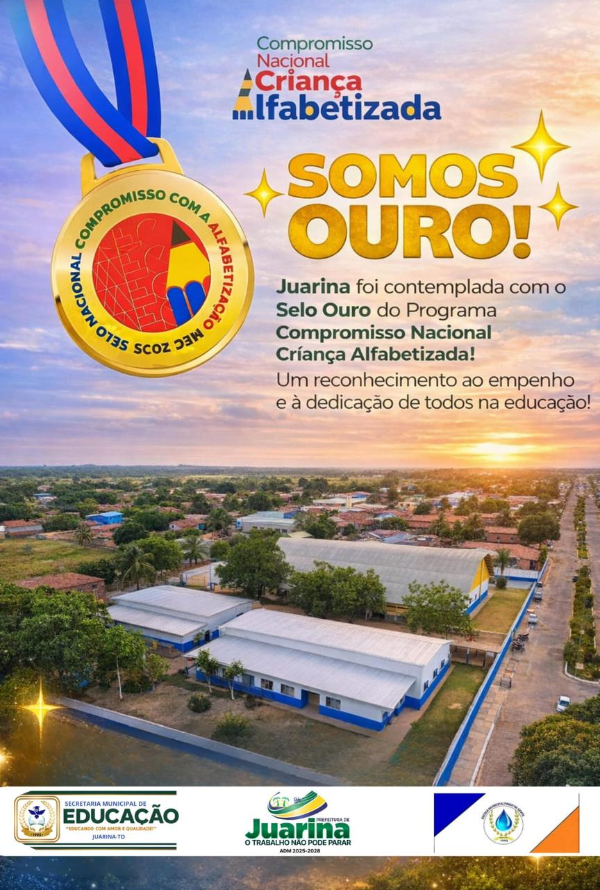 É com imenso orgulho que a Prefeitura de Juarina, por meio da Secretaria Municipal de Educação (SEMED), anuncia uma conquista histórica para o nosso município: recebemos o Selo Ouro no Compromisso Nacional Criança Alfabetizada, conferido pelo Ministério da Educação (MEC).